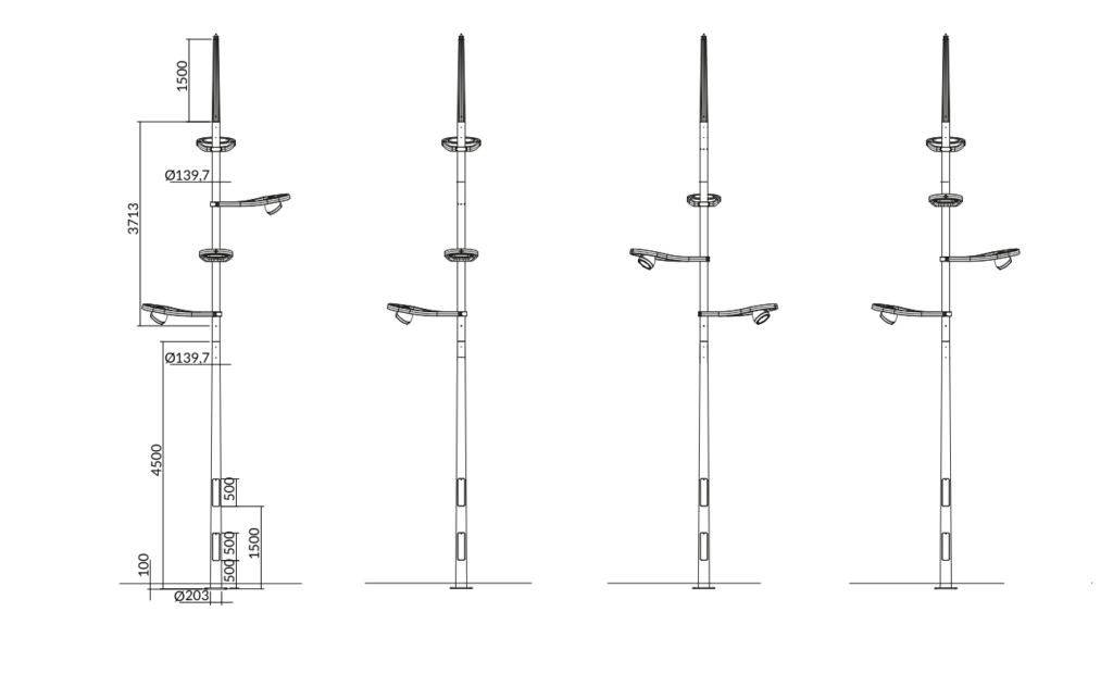 Il palo può avere uno, due, tre o quattro BRACKET orientabili ogni 60 gradi.