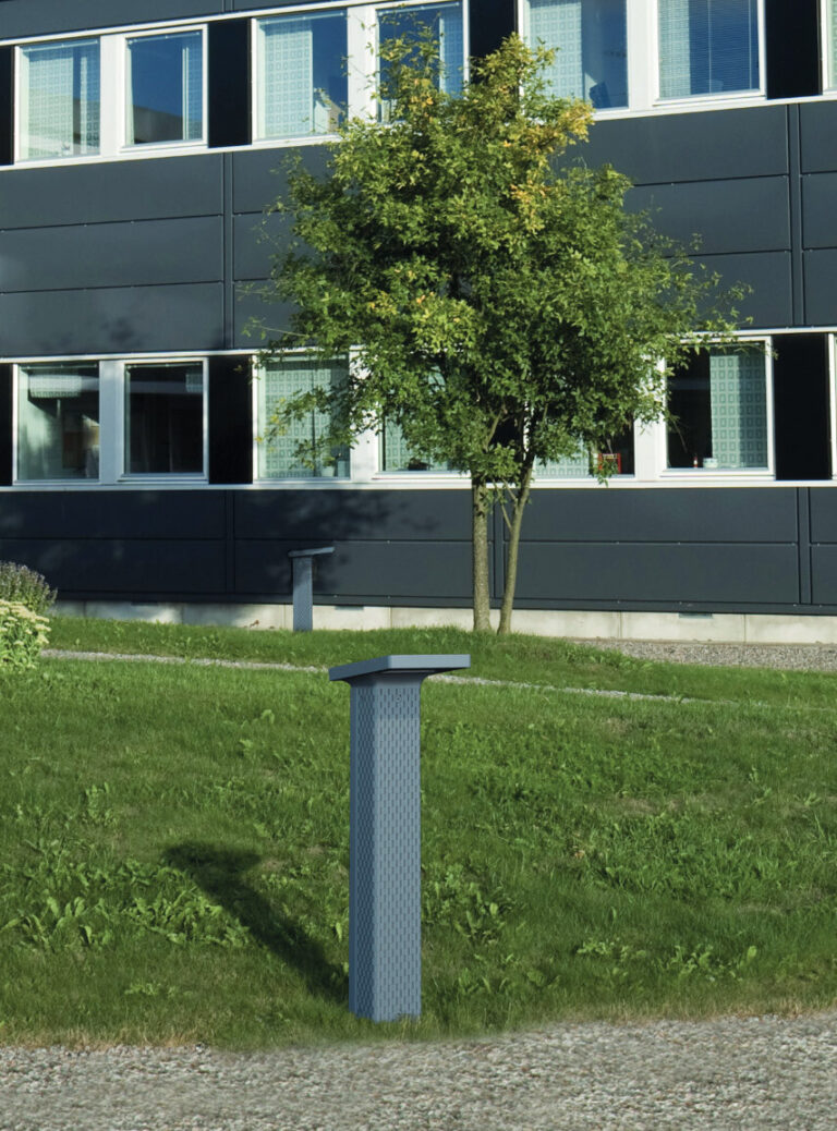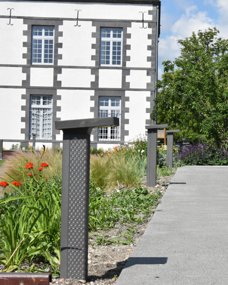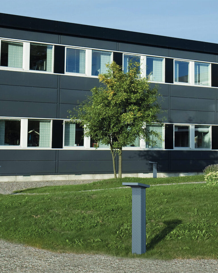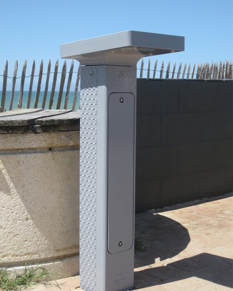 CORPO: Testa e modulo di illuminazione in alluminio pressofuso. Dissuasore in ghisa metallizzata