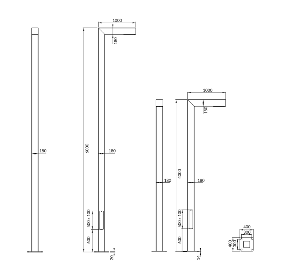 TAIGAPalo/luce in acciaio zincato a caldo a sezione quadrataSEZIONE: 180 x 180 mm